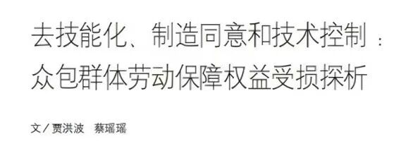 近日,北京航空航天大學人文社會科學學院(公共管理學院)賈洪波教授、博士研究生蔡瑤瑤發表《去技能化、制造同意和技術控制:眾包群體勞動保障權益受損探析》一文,被《人大復印報刊資料·勞動經濟與勞動關系》so米體育-NBAso米直播第9期全文轉載